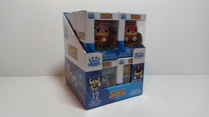 Hier seht ihr auch mal einen Größenvergleich mit einer normalen Funko Pop Figur, einer Mystery Mini Figur, der Cereal-Packung beiliegenden Figur und einer Bitty Pop Figur.
