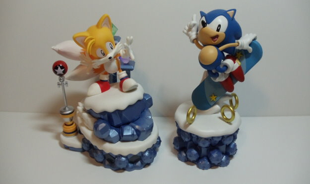 Baubare Statuen von Sonic und Tails.