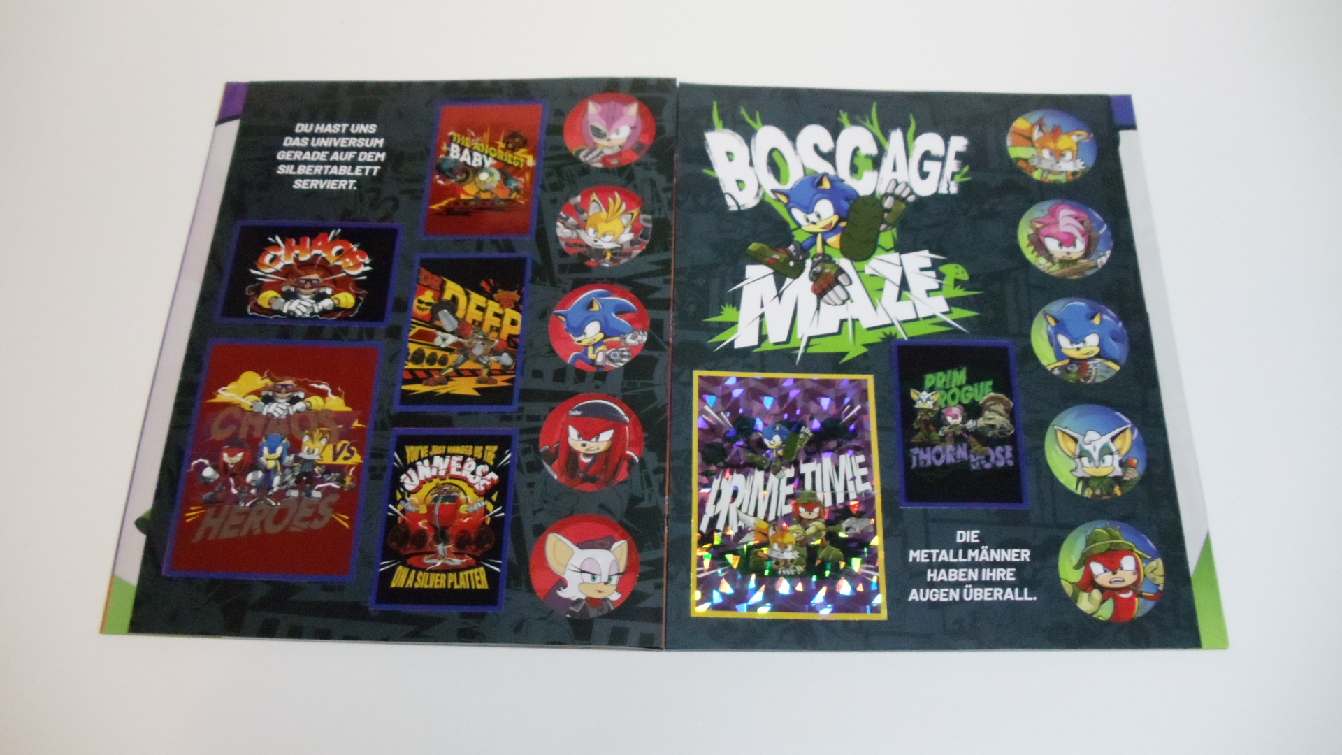 Dem spanischen Sonic Prime Album liegen keine Gratissticker bei. Dem deutschen oder englischen liegen sechs Sticker bei.