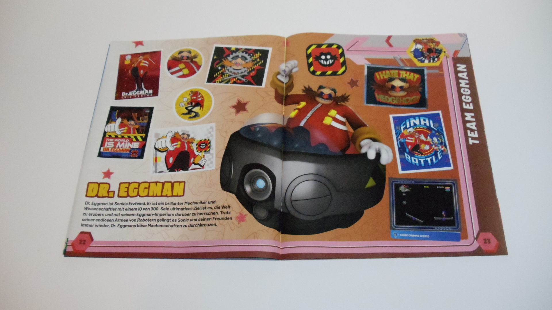 Das Album hat Platz für 180 Sticker. Davon sind am Anfang kleine Rückblicke über Sonics vergangene Spiele.