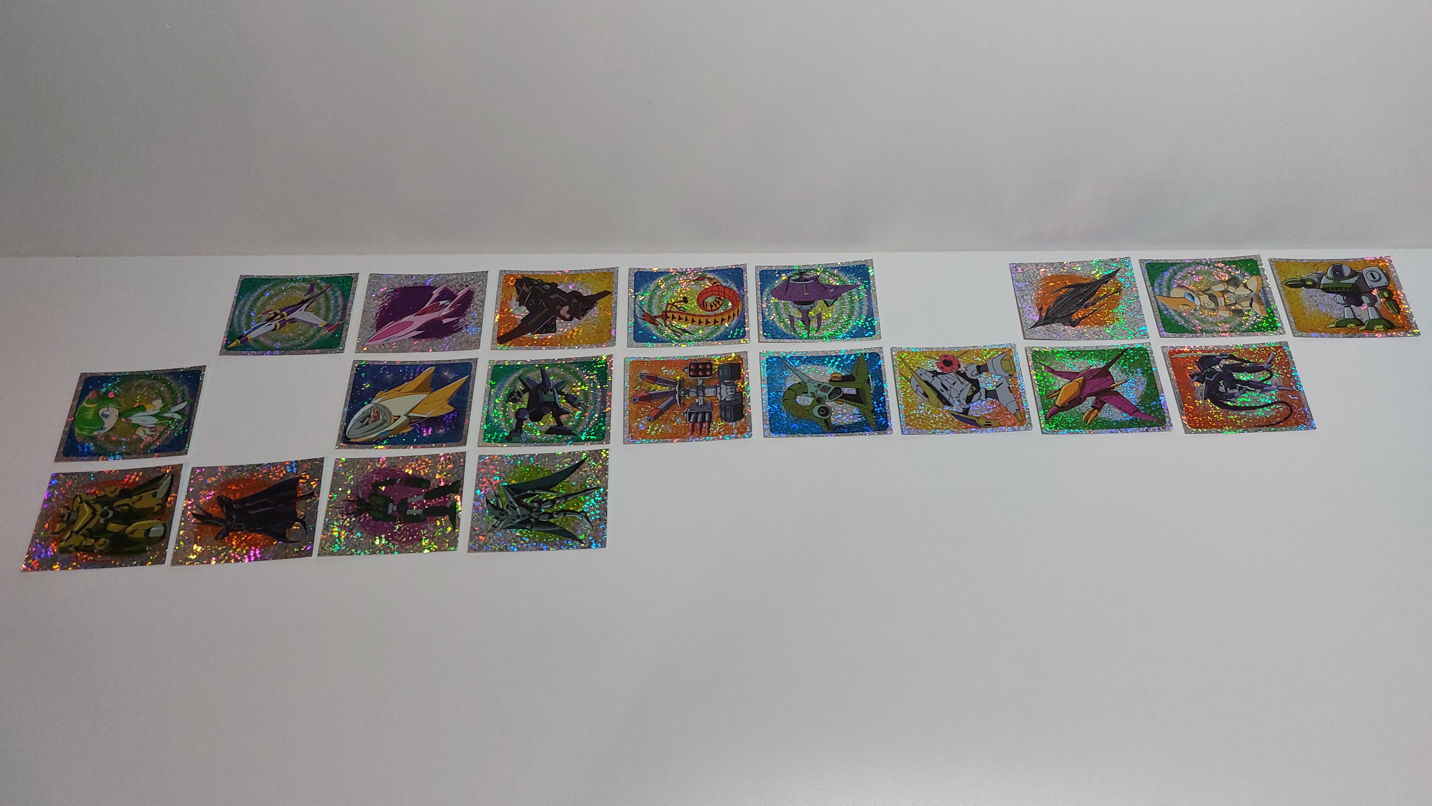 Hier die 52 Sticker und unten die Koukou Roukou Waffelriegel denen die Sticker beilagen.