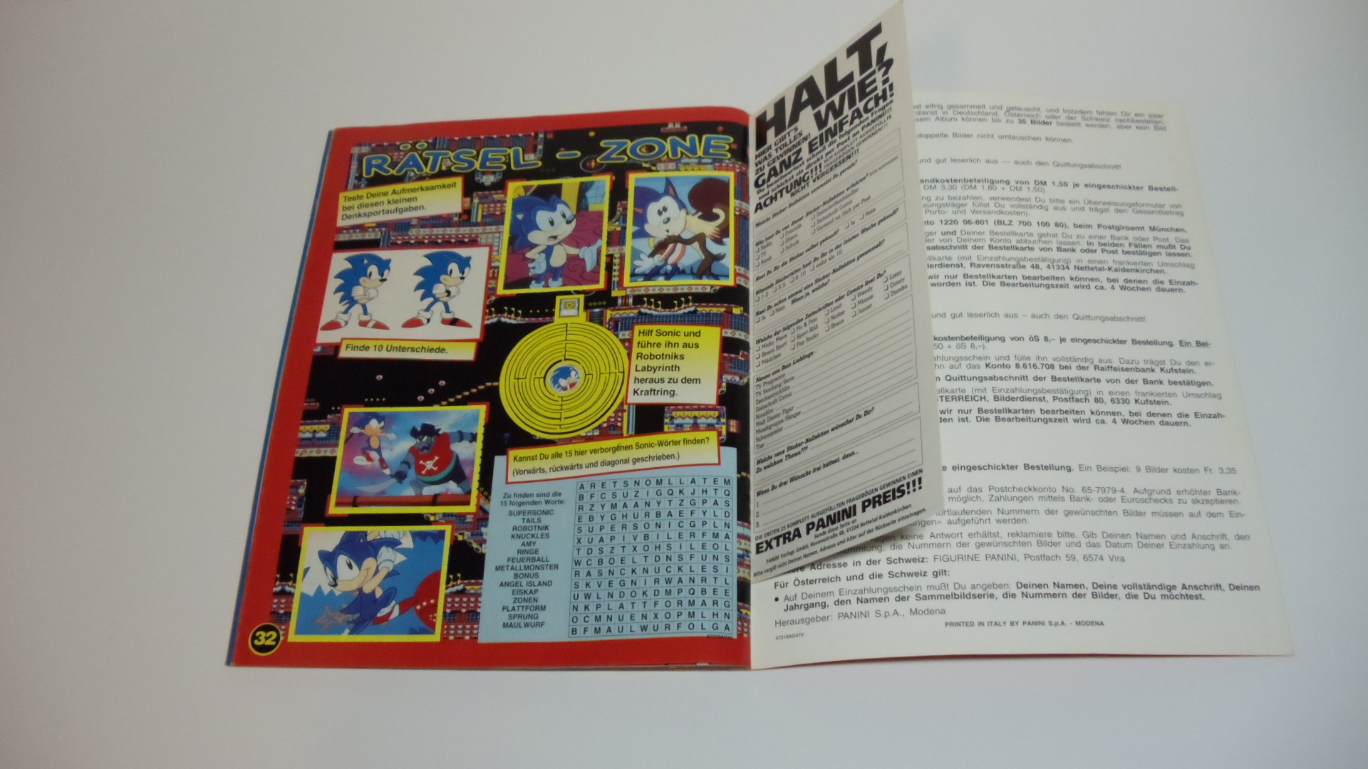 Das Sonic the Hedgehog Stickeralbum von Panini erschien im Jahre 1996 in deutscher, englischer und niederländischer Sprache.