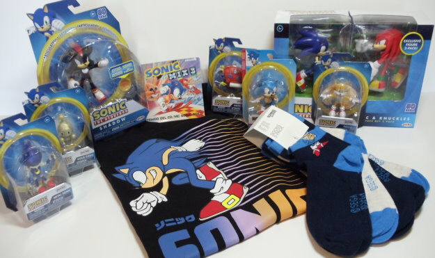 Fünf kleine Actionfiguren von Sonic, Tails, Metal Sonic, Chao und Moto Bug, eine größere Actionfigur von Shadow, ein Sonic und Knuckles Figuren Doppelpack, ein Kinder-T-Shirt, ein 5er Pack Kinder-Socken und eine Sonic Mix Promo-Musik-CD.
